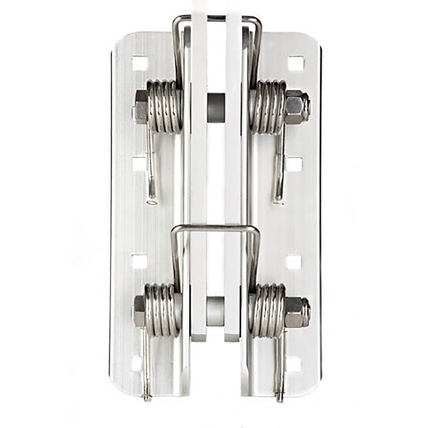 This adjustable outboard motor bracket is designed for motors up to 20 HP or 115 lbs. Its heavy-duty, light weight aluminum is designed for fresh water use on both powerboats and sail boats. Unit is spring loaded. 11 in. of travel with 5 stops.( Not to be used with 4 stroke engines.)