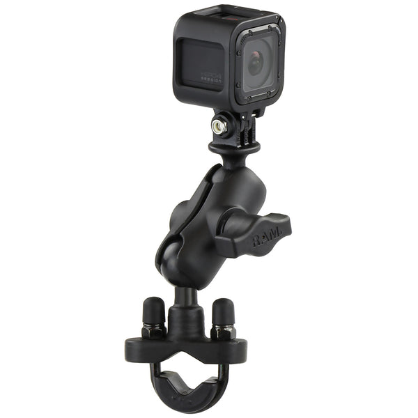RAM Handlebar Rail Mount, Zinc Coated U-Bolt, Short Double Socket Arm & 1" Diameter Ball with Custom GoPro Hero Adapter