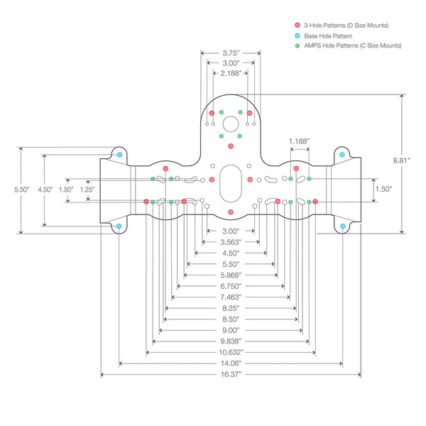 - Includes AMPS and tri-hole patterns for RAM® D-size bases