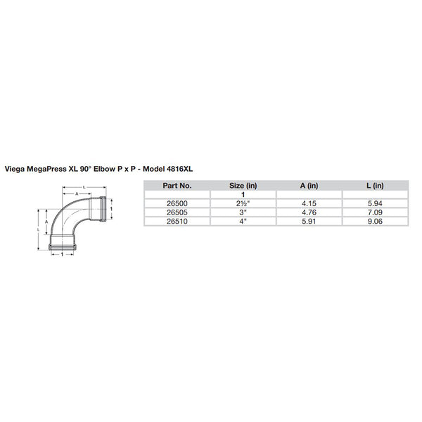 MegaPress 2-1/2" 90° Carbon Steel Elbow w/FKM - Double Press Connection - Smart Connect Technology