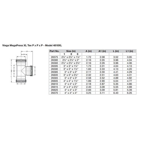MegaPress 4" Carbon Steel Tee with FKM - Triple Press Connection - Smart Connect Technology