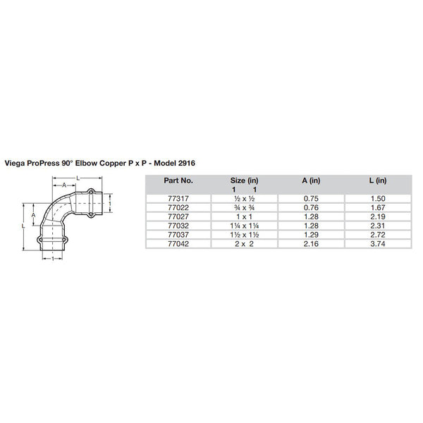 ProPress 2" - 90° Copper Elbow - Double Press Connection - Smart Connect Technology