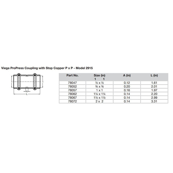 ProPress 3/4" Copper Coupling with Stop - Double Press Connection - Smart Connect Technology