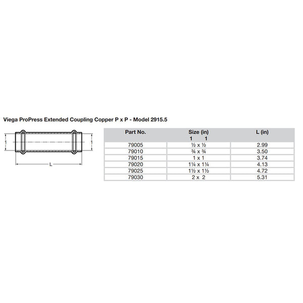 ProPress 3/4" Extended Coupling without Stop - Double Press Connection - Smart Connect Technology