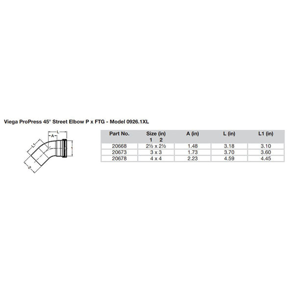 2-1/2" - 45° Copper Elbow - Street/Press Connection - Smart Connect Technology